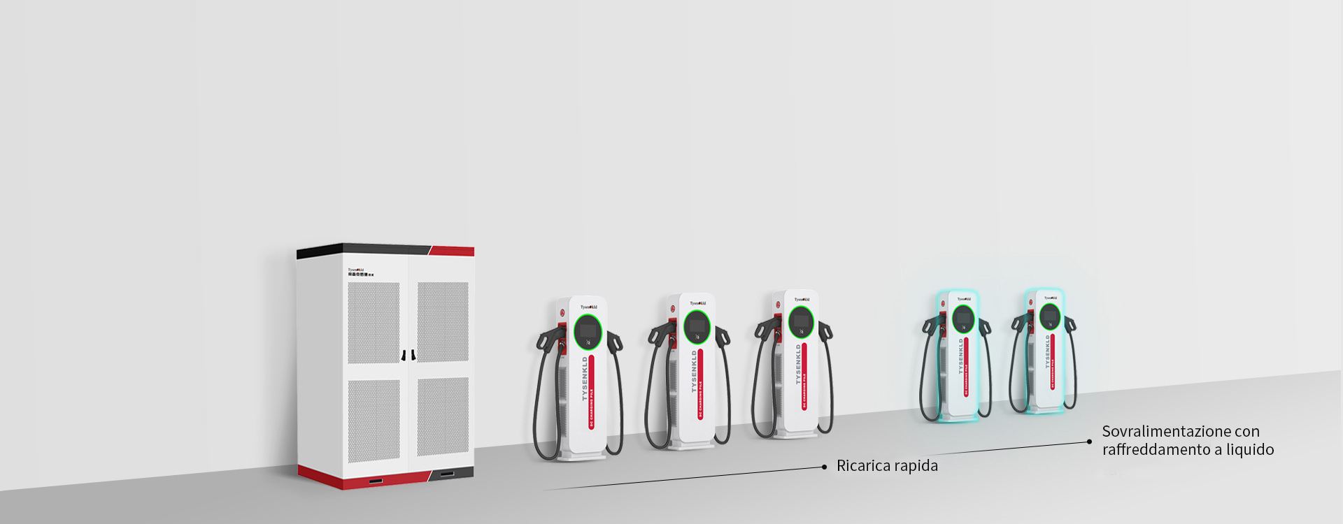 È costituito dall'armadio di alimentazione principale e da più terminali di ricarica; i terminali di ricarica possono essere classificati in due tipi: caricatore con due pistole e caricatore con una sola pistola; il prodotto adotta il concetto di design modulare, utilizza il controllo centralizzato e la tecnologia di ricarica flessibile per ottenere la condivisione della potenza e la distribuzione su richiesta, in grado di soddisfare le esigenze di ricarica di veicoli elettrici di diversi modelli e potenze.