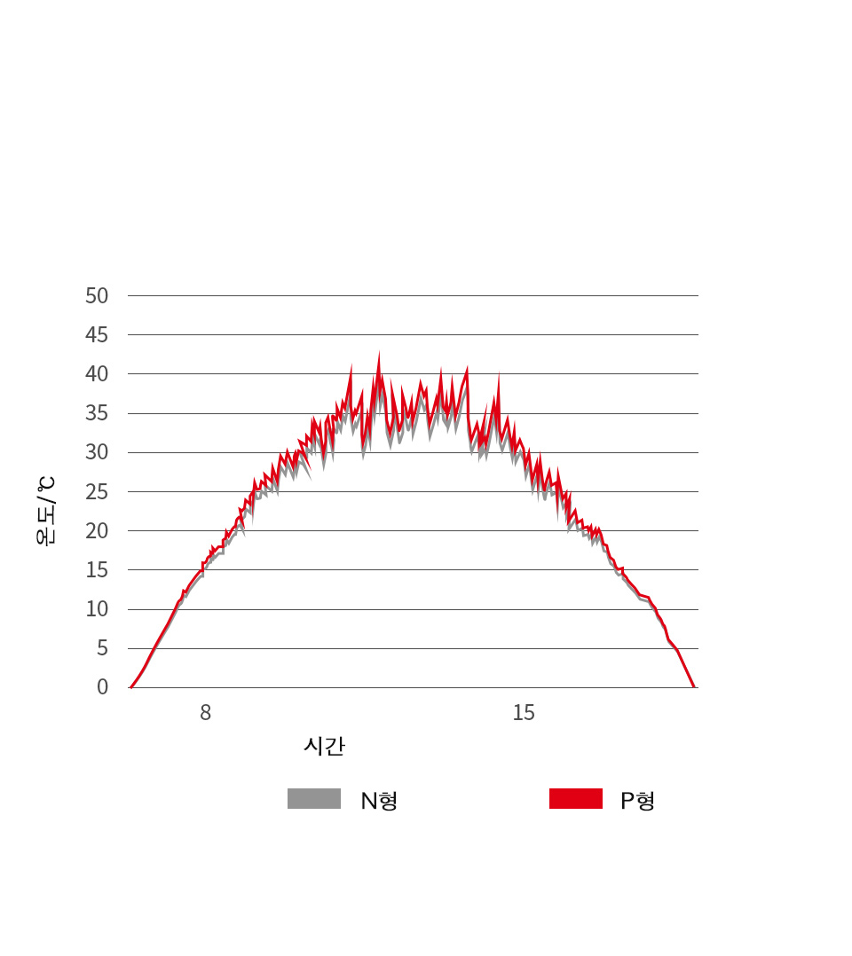 | 단락 전류(Isc) | 13.80A | 14.03A | 14.37A | 18.52A | 18.39A |
