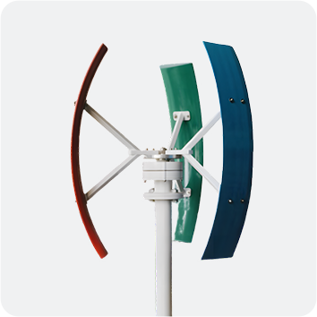 KLD-WTV 시리즈 수직 축 풍력 발전기, 전력 범위 100W-20kW, 로터의 회전축은 지면과 수직된다. 수직축 풍력발전기는 수평축 풍력발전기에 비해 풍향이 바뀔 때 바람을 맞출 필요가 없기 때문에 구조 설계상 더욱 간단하며 로터가 바람을 맞출 때의 팽이력을 감소시킨다. 수직축 풍력발전기의 날개는 보통 대칭적인 구조로 어떤 방향의 바람이든지 다 받아들일 수 있기 때문에 풍향이 고정되지 않은 장소에 적합하다.