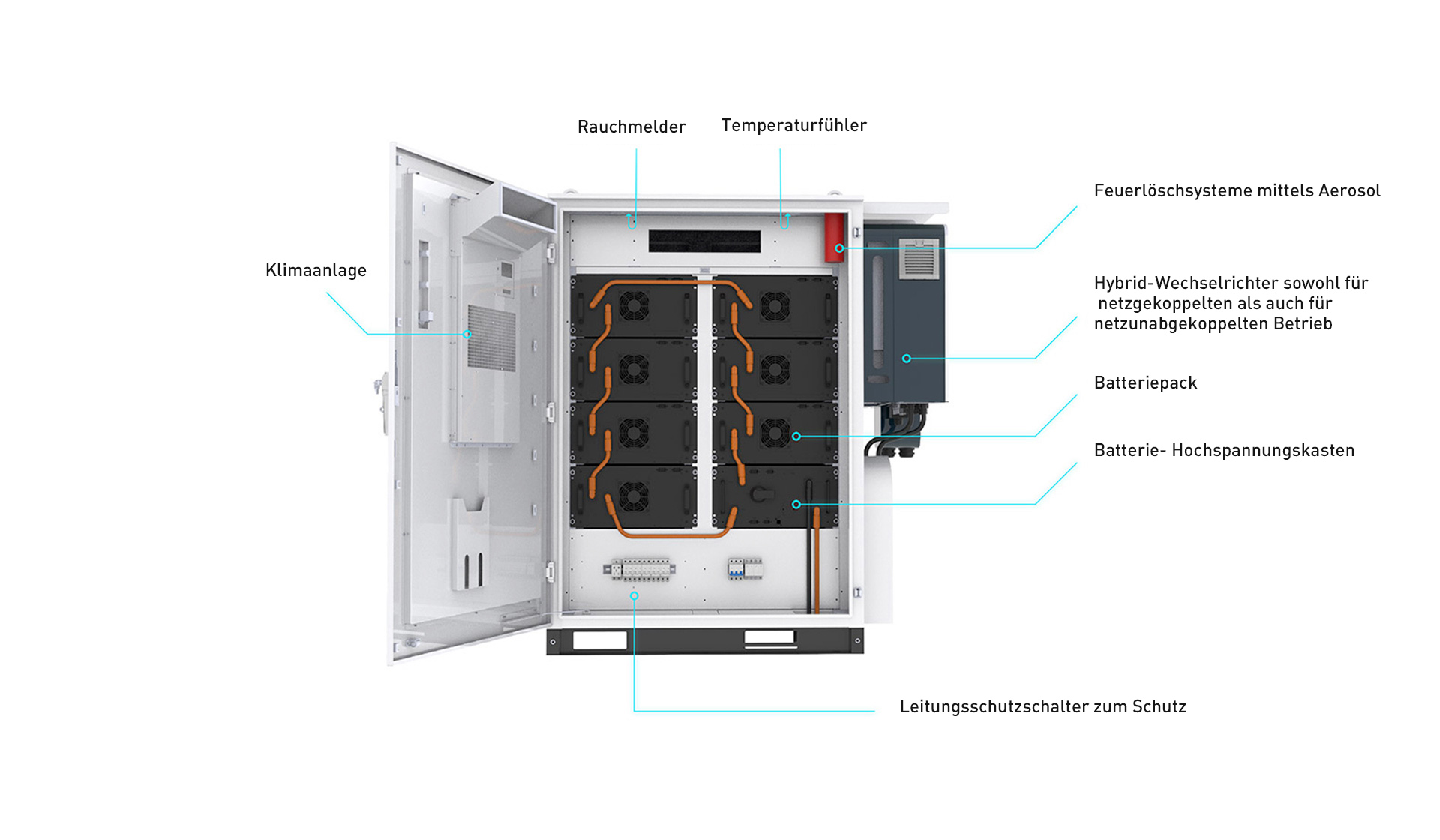 EMS, PCS, BMS, Redundanz der Spannungsversorgung, Schwarzstart, usw. sind integriert.