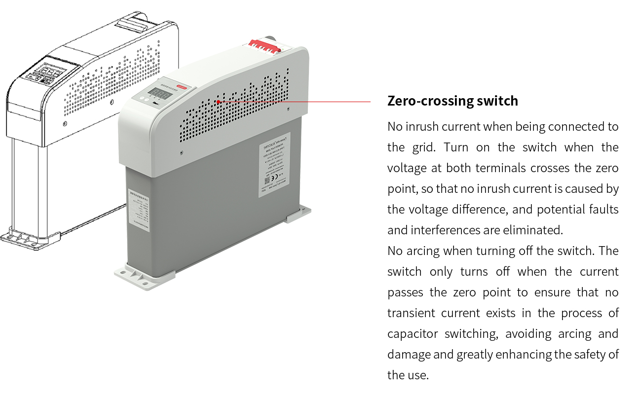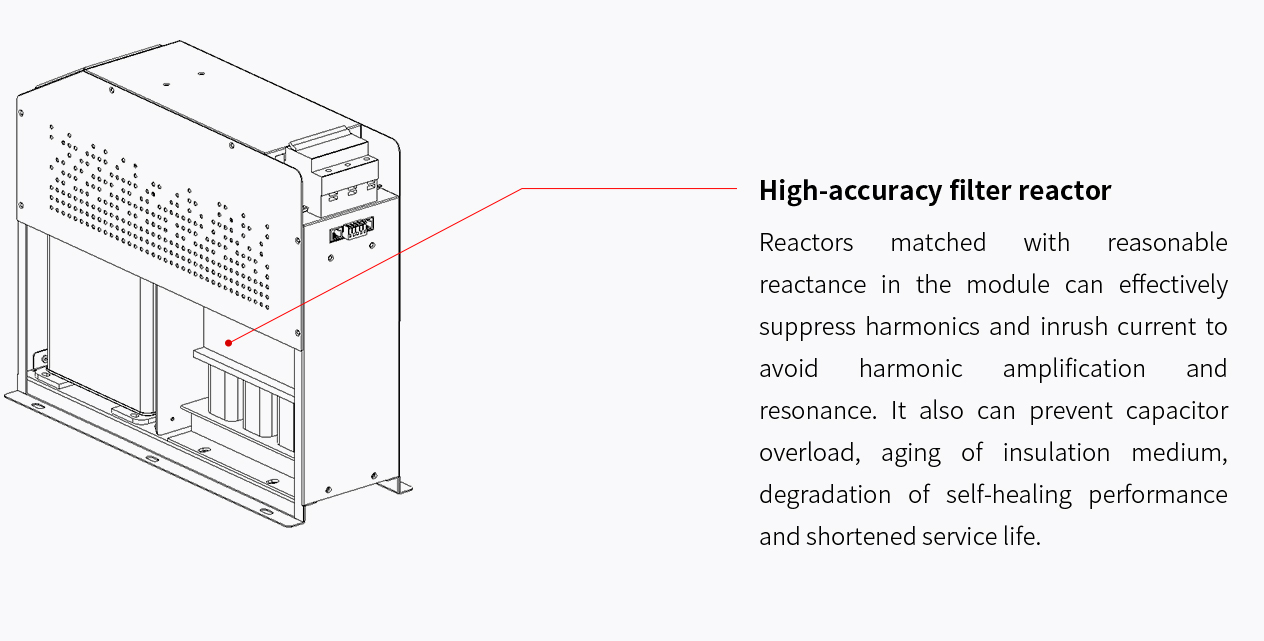 Modular structure combines related components into a whole, featuring small volume, simple on-site wiring, and convenient maintenance. When the capacity of reactive power compensation is insufficient, it is convenient to add more intelligent capacitor module for capacity expansion to meet the reactive power demand. Intelligent capacitor has the functions of short-circuit protection, phase loss protection, overcurrent protection and over temperature protection, etc., which can effectively ensure the safety of use and prolong the service life.