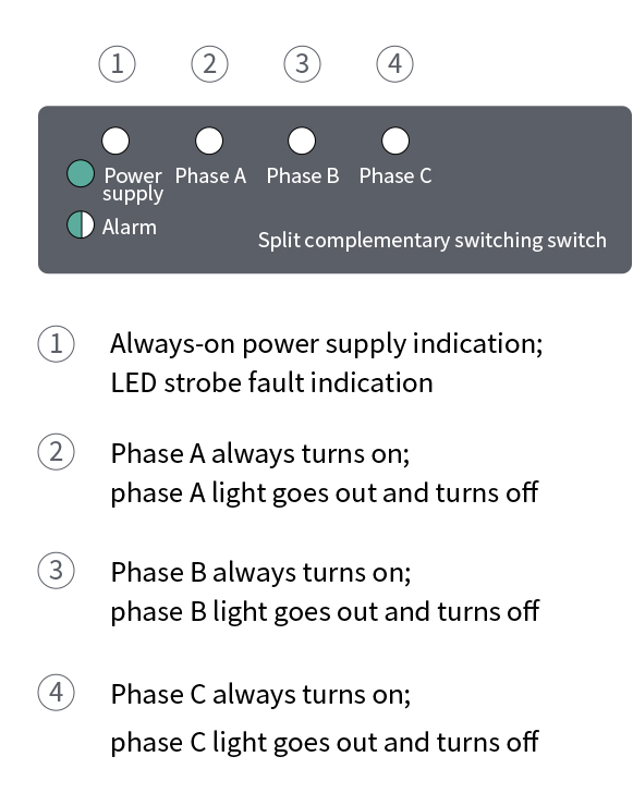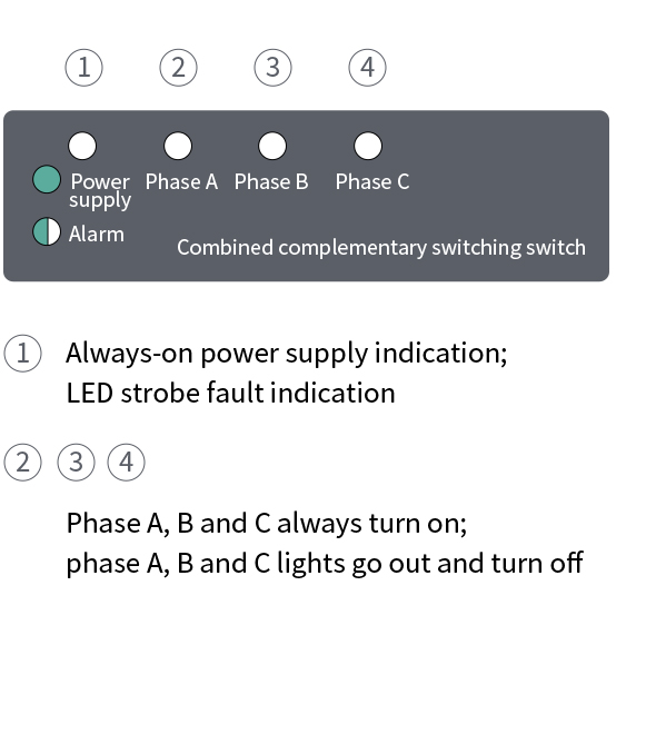 Equipped with diversified protection functions such as phase loss, phase dislocation, power supply, overtemperature, etc., the switch can indicate the cause of alarm through the power supply alarm LEDs. When a fault occurs, the switch will trigger LED strobes, and the number of times of LED strobes indicates the fault code. The cause of the fault can be found by checking the alarm code table of the CS series composite switches to ensure the reliable operation of the equipment.