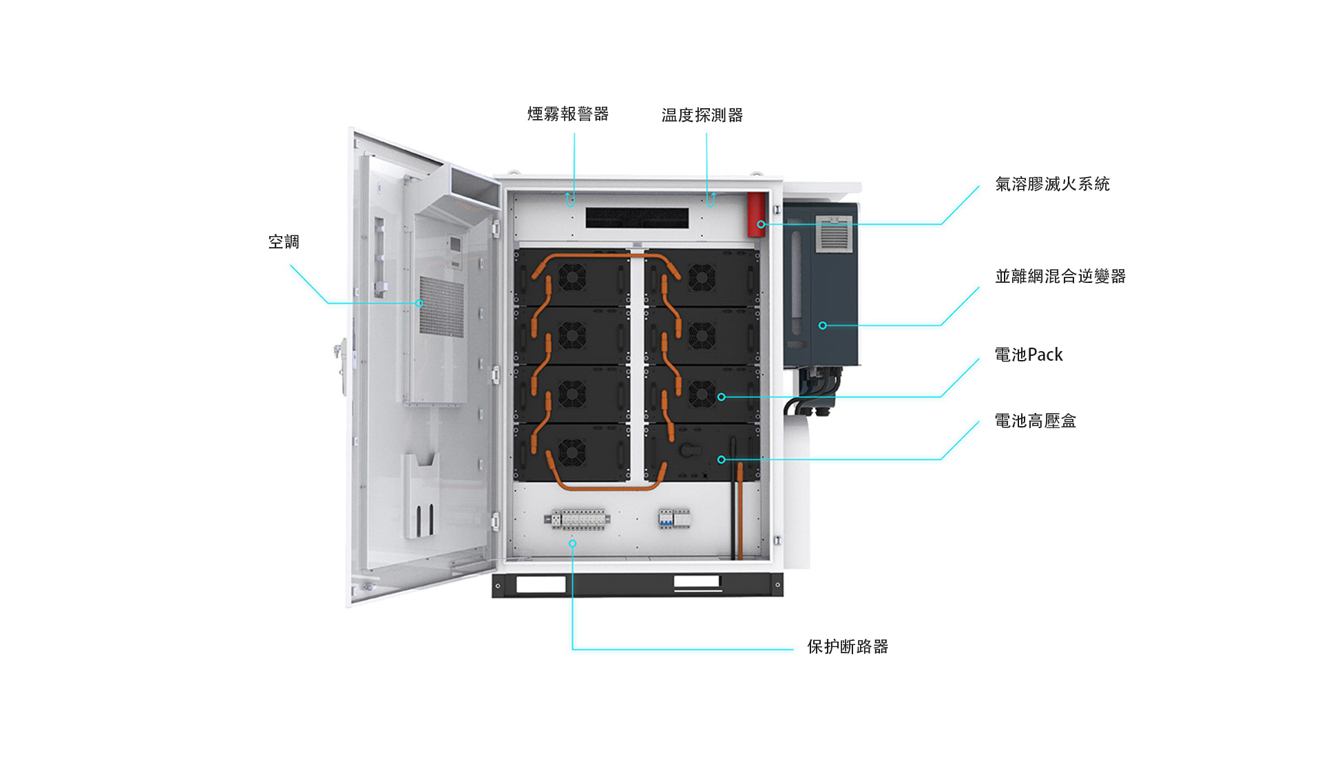 無鈷磷酸鐵鋰(LFP)電池,PACK+系統+櫃體隔熱三重消防設計、獨立繼電保護、電芯級熱監控、單點故障物理隔離,顯著提升系統安全性。
