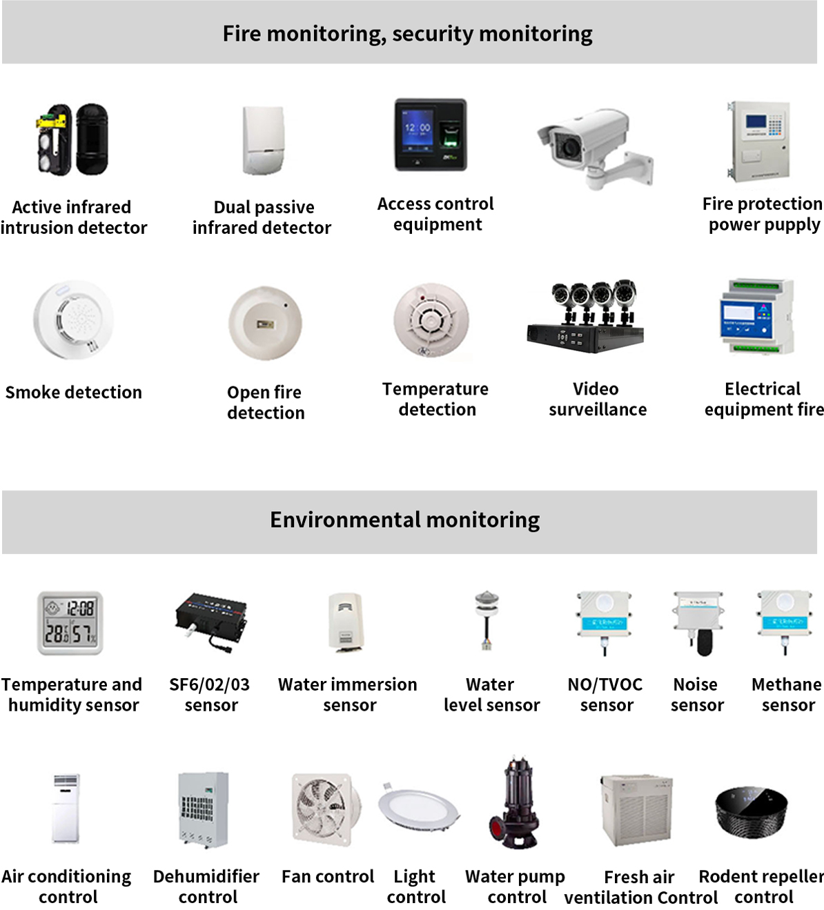 可选配温湿度、烟感、水浸、红外探测、局放、有害气体、门禁、视频等全面的环境检测和预报警